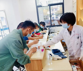 在献血屋内,,,,参加献血的尊龙时凯伙伴们在医务人员和机关志愿者的引导下,,有序完成扫码测温、、、、预约登记和体检采血。。。