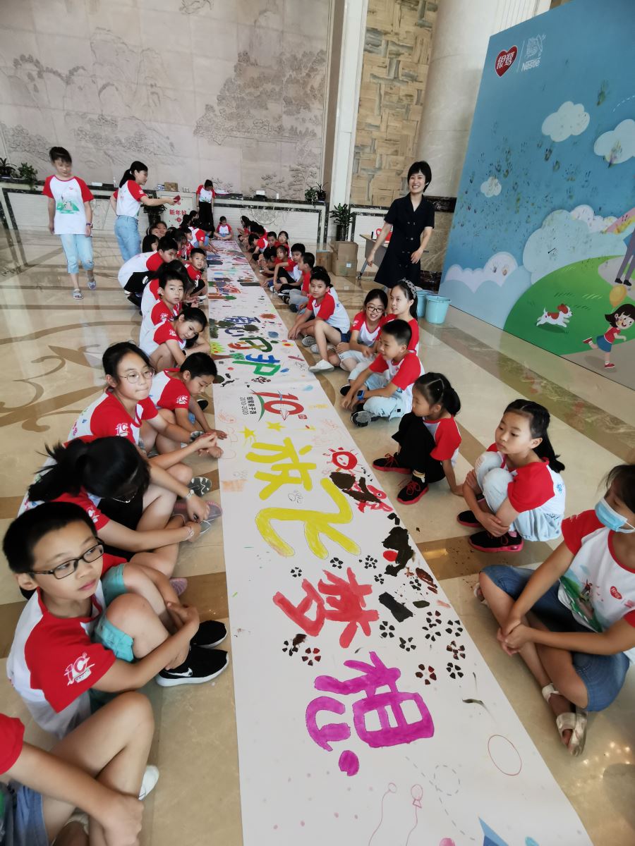 “梦想画布”是今年的特别环节,,,,意在让孩子们放松身心,,,,放飞梦想。。活动现场,,,,孩子们领用各种画笔,,,,在工作人员的引导下,,有序围在画布两旁开始作画,,,各显身手尽情地涂抹挥洒。。