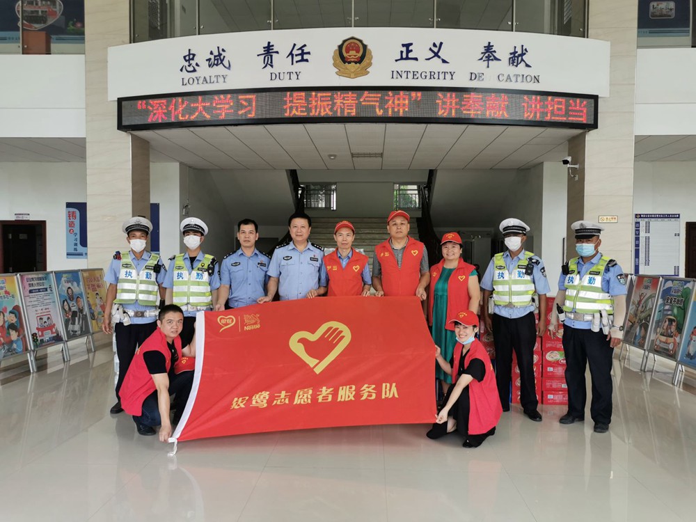 随后,,,,志愿者们前往同安区交警大队,,为民警们送上慰问物资。。。